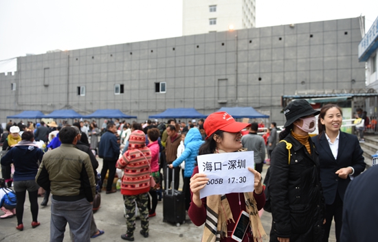 由于??谌蟾劭谶B續(xù)間斷性停航,從2月19日起每天有上萬名旅客乘坐客車出島,造成省際班線運(yùn)力短缺。為及時(shí)疏運(yùn)旅客,海汽集團(tuán)從各分公司緊急調(diào)派350輛海汽快車和30輛旅游大巴支援省際運(yùn)輸,同時(shí)從旅游客運(yùn)分公司調(diào)派250輛旅游車補(bǔ)充市際班線運(yùn)力,有力保障車輛運(yùn)輸和接駁服務(wù)工作到位。